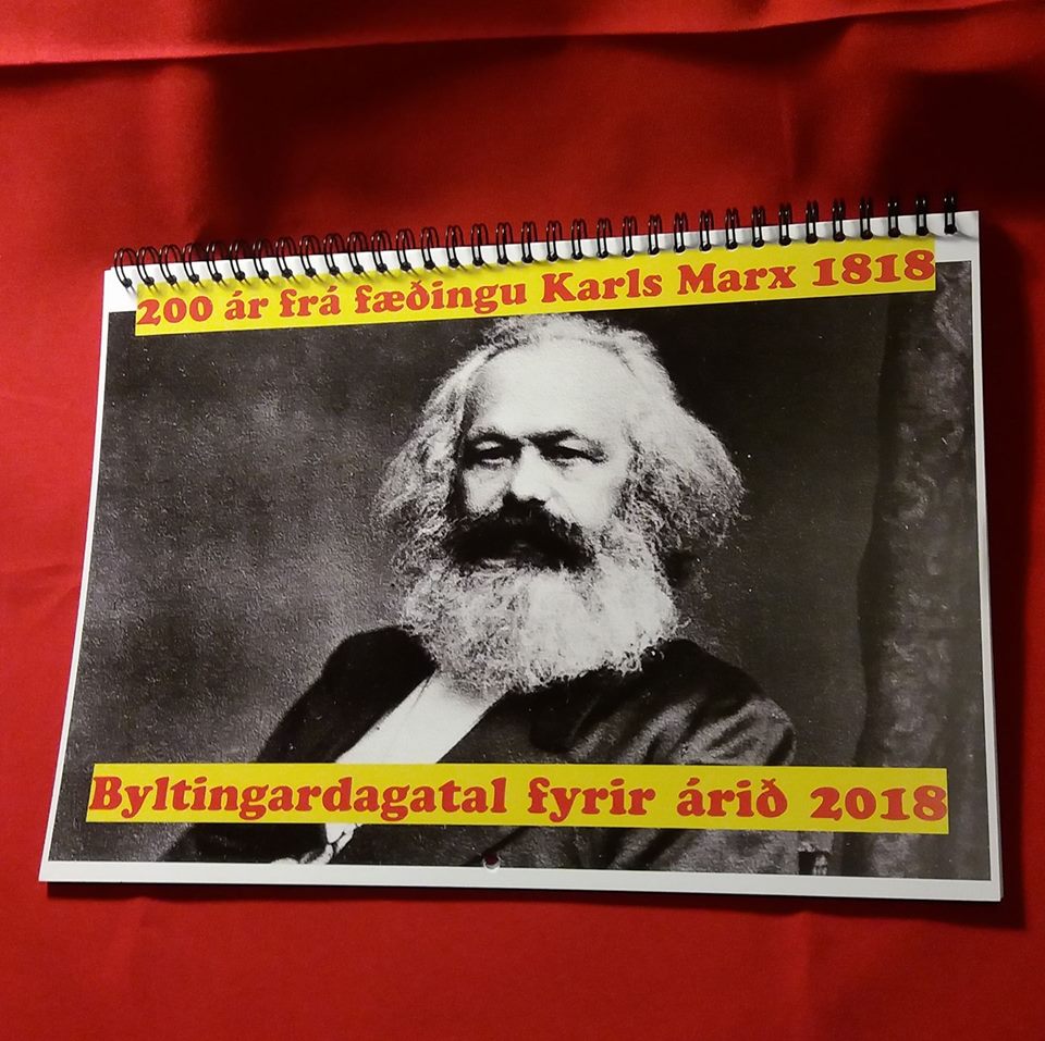 Forsíðumyndin er af Karli Marx, en hann hefði einmitt orðið 200 ára vorið 2018. Hægt er að nálgast dagatal hjá félaginu fyrir aðeins 1500 krónur (eða fjögur stykki fyrir 5000).